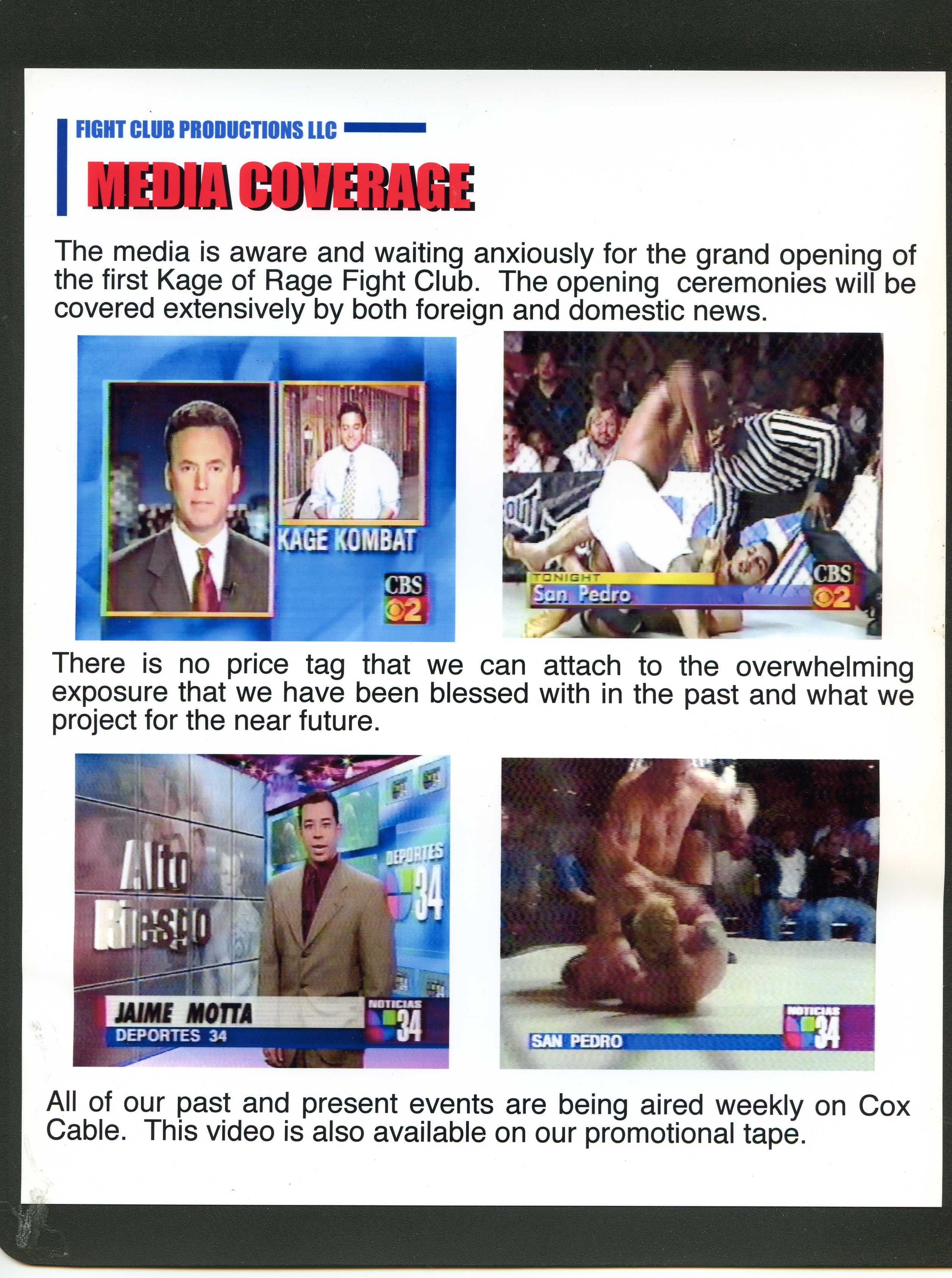 If I didn’t take a chance and do Kage Kombat that Monday night the Octagon and MMA would not be here today. I originated the Octagon wrote the rules for MMA got approved for the first license for MMA. This media package was what made sport legal. Also was given to Sean Perry of Endeavor when I met with them. Also was given to Nevada State Athletic Commission when Fertitta was on commission. Also was given to John Lewis who gave it to Dana White who then gave to Fertitta to get him interested. Endeavor was going to put me on channel 13 and I had Pay Per View. If endeavor never seen this they would have never got involved they made the sport happen. They now own UFC.