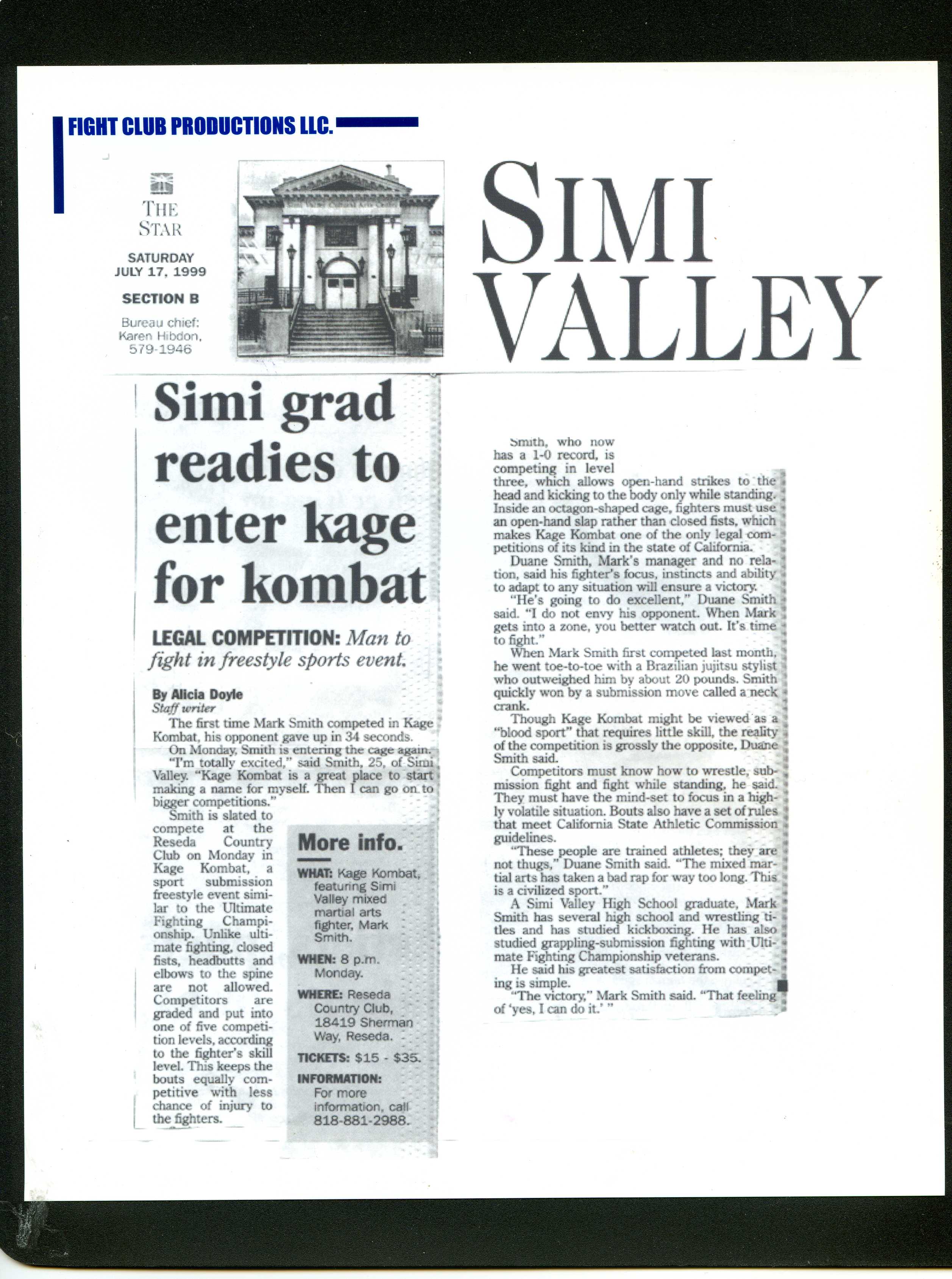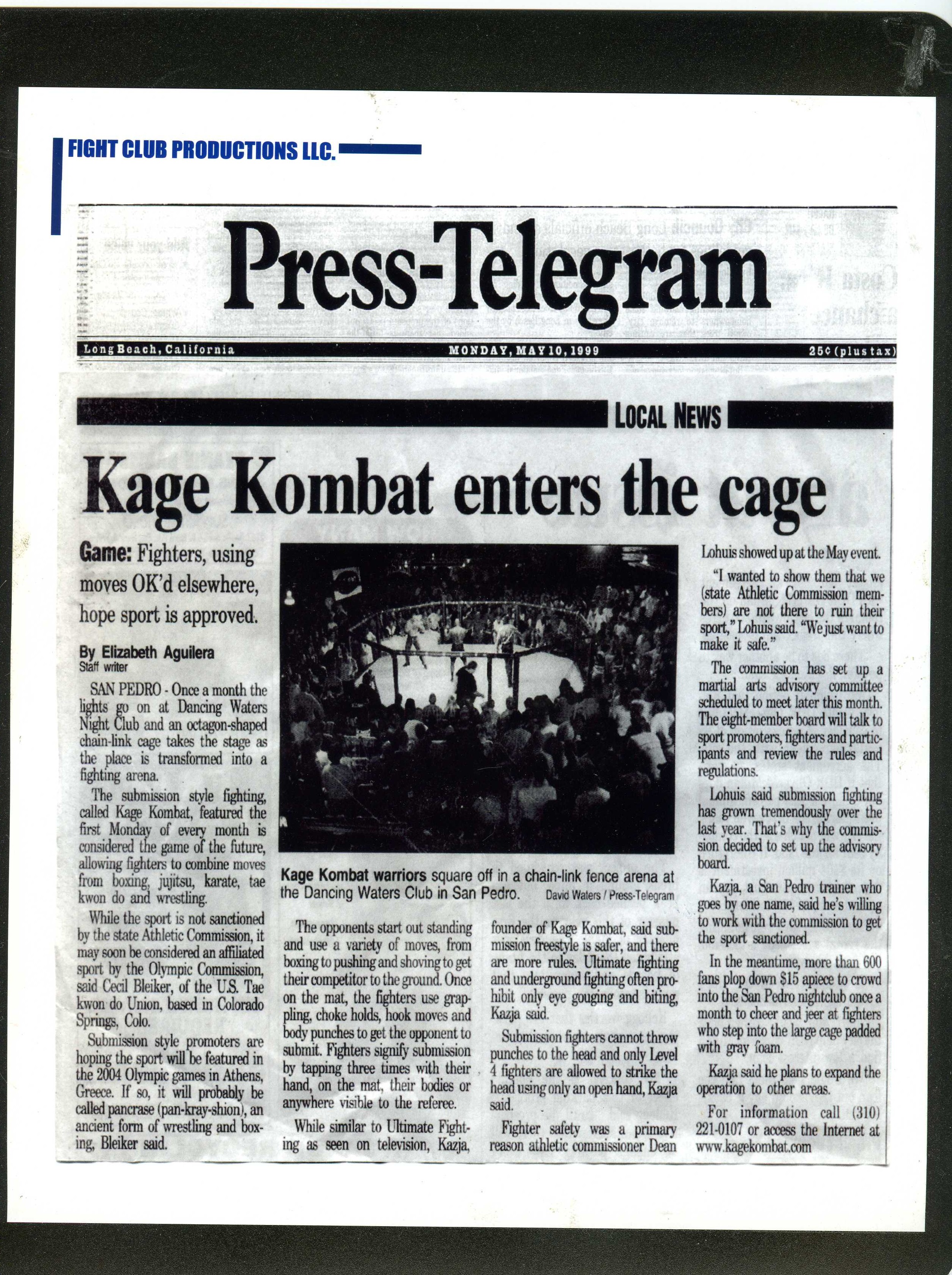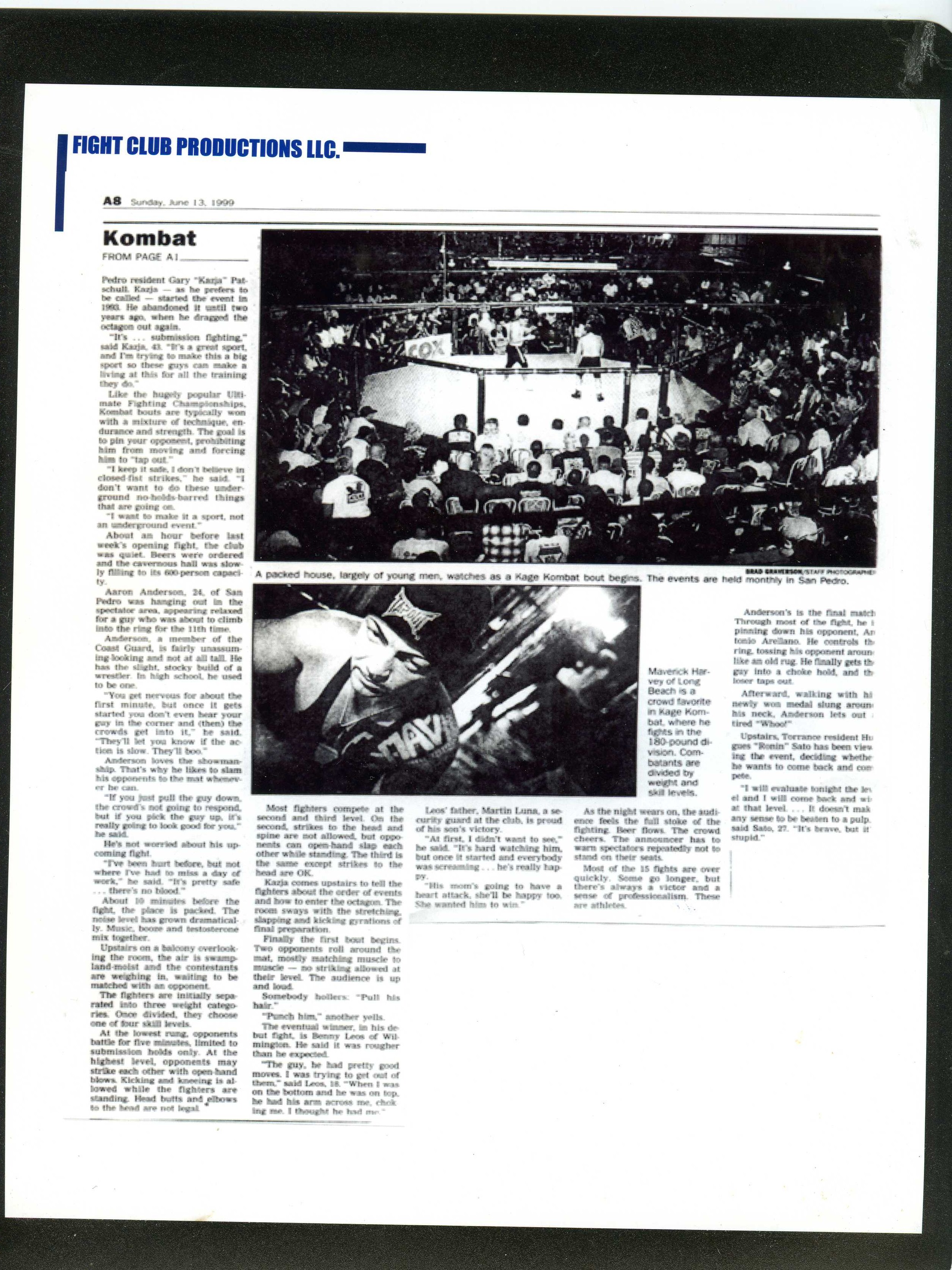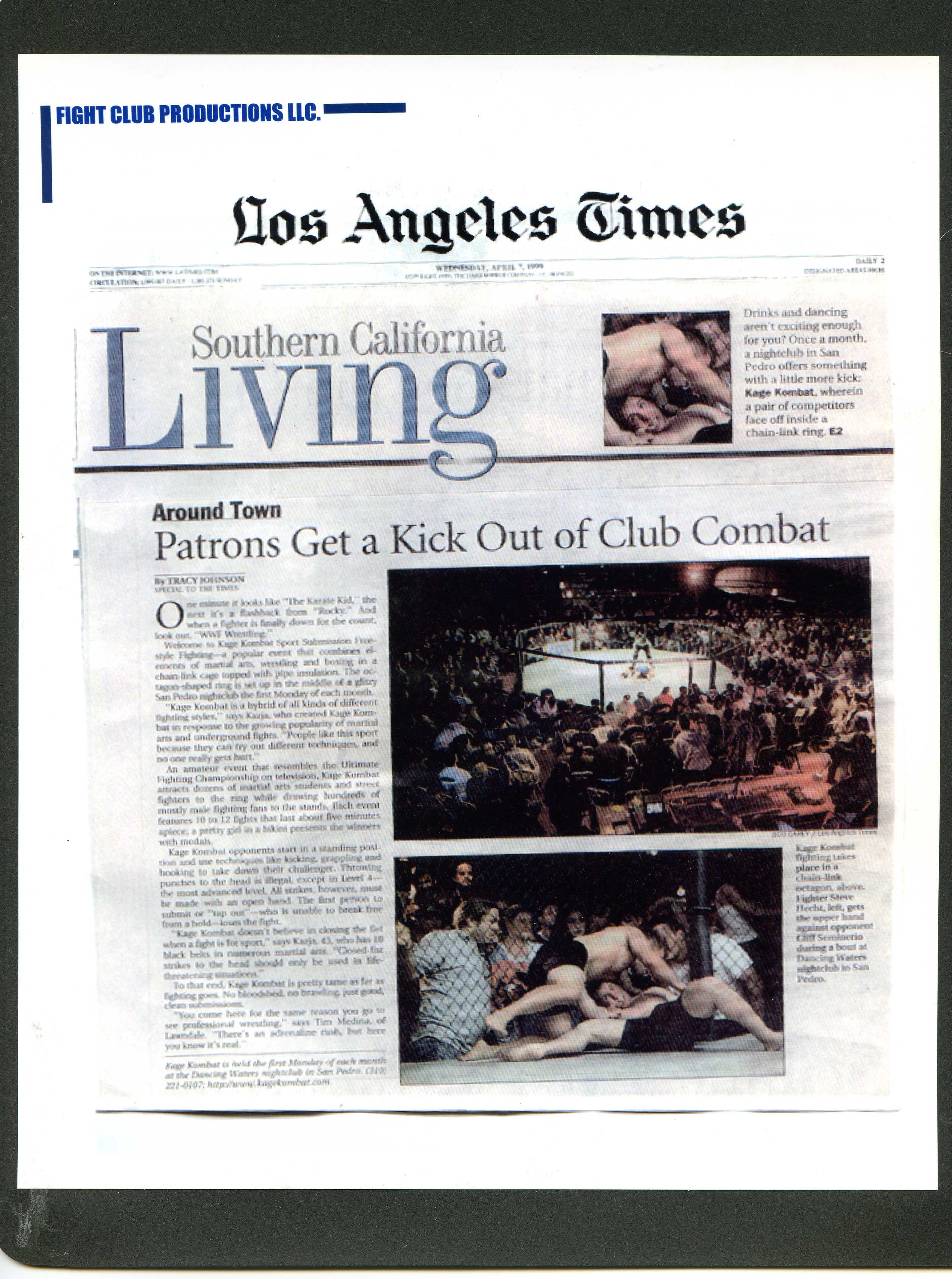 This reporter helped launch this as a accepted sport. She would watch Kage Kombat every night on Cox Cable in Palos Verdes. She called me and asked to cover my event. I said sure you have front row.